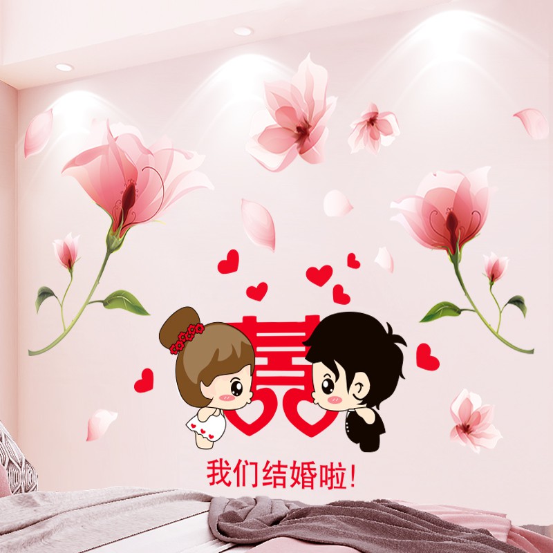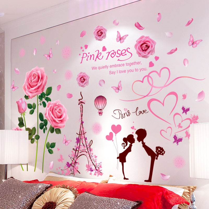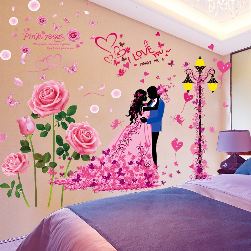 Pasangan Romantis Stiker Dinding Kamar Tidur Hiasan Dinding Stiker Kamar Pernikahan Sewa Rumah Sewa Rumah Transformasi Wallpaper Perekat Diri Shopee Indonesia