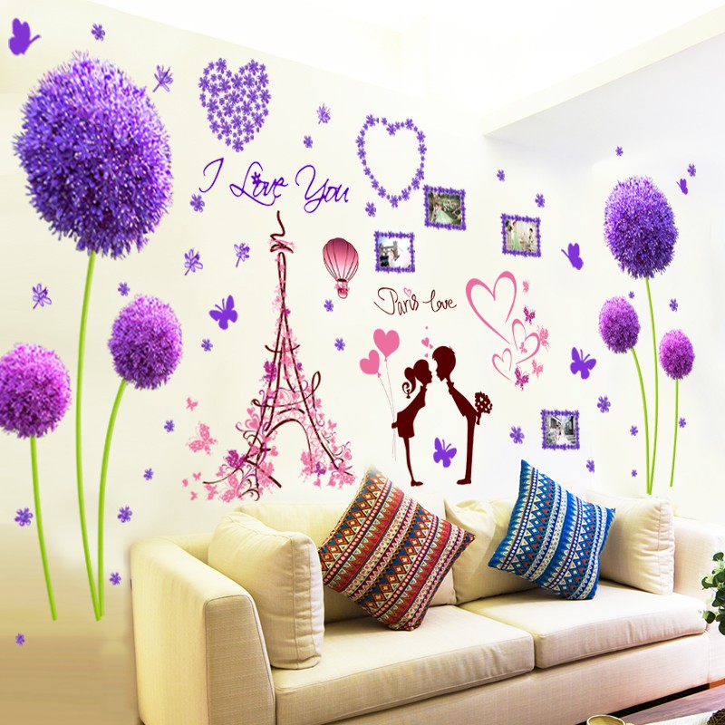 Ungu Dandelion Kamar Tidur Samping Tempat Tidur Hangat Romantis Stiker Stiker Dinding Latar Belakang Hiasan Dinding Wallpaper Dinding Menancapkan Kamar Shopee Indonesia
