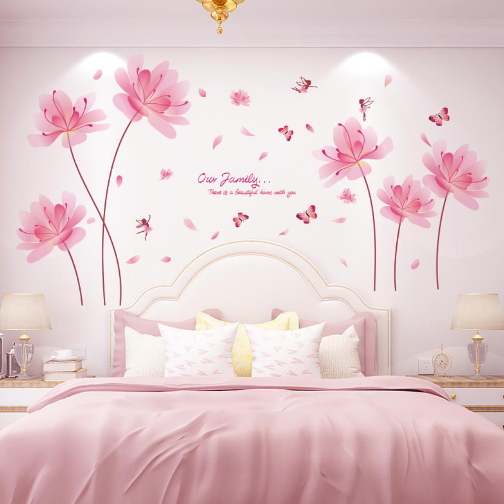 Romantis Wallpaper Hangat Perekat Diri Kamar Tidur Samping Tempat Tidur Latar Belakang Hiasan Dinding Stiker Merah Muda Bunga Stiker Dinding Perekat Diri Wallpaper Shopee Indonesia