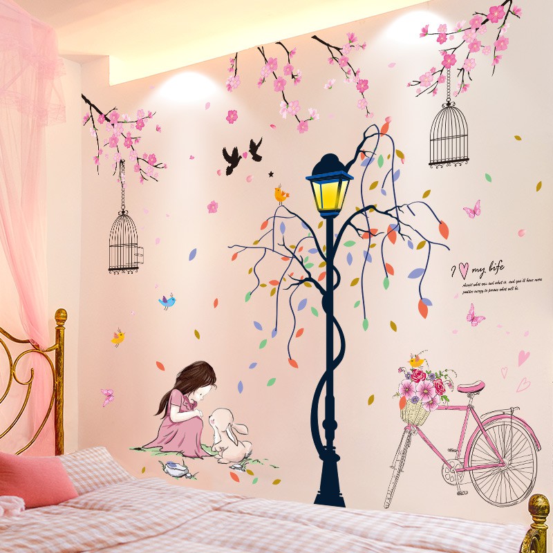 Stiker Dinding Kreatif Kamar Tidur Hangat Romantis Samping Tempat Tidur Kamar Gadis Dekorasi Lukisan Wallpaper Perekat Shopee Indonesia