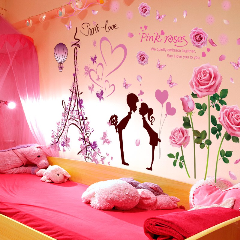 Romantis Cinta Stiker Dinding Decals Mural Untuk Gadis Kamar Tidur Dekorasi Kamar Dekorasi Rumah Vinyl Dinding Stiker Wallpaper Vinilos Decorativos Para Paredes Wall Stickerlove Wall Sticker Aliexpress