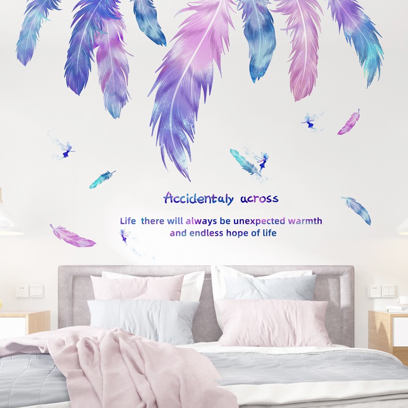 Fantasi Bulu Stiker Ins Gadis Kamar Tidur Samping Tempat Tidur Kertas Dinding Dekorasi Kamar Kreatif Romantis Stiker Dinding Shopee Indonesia